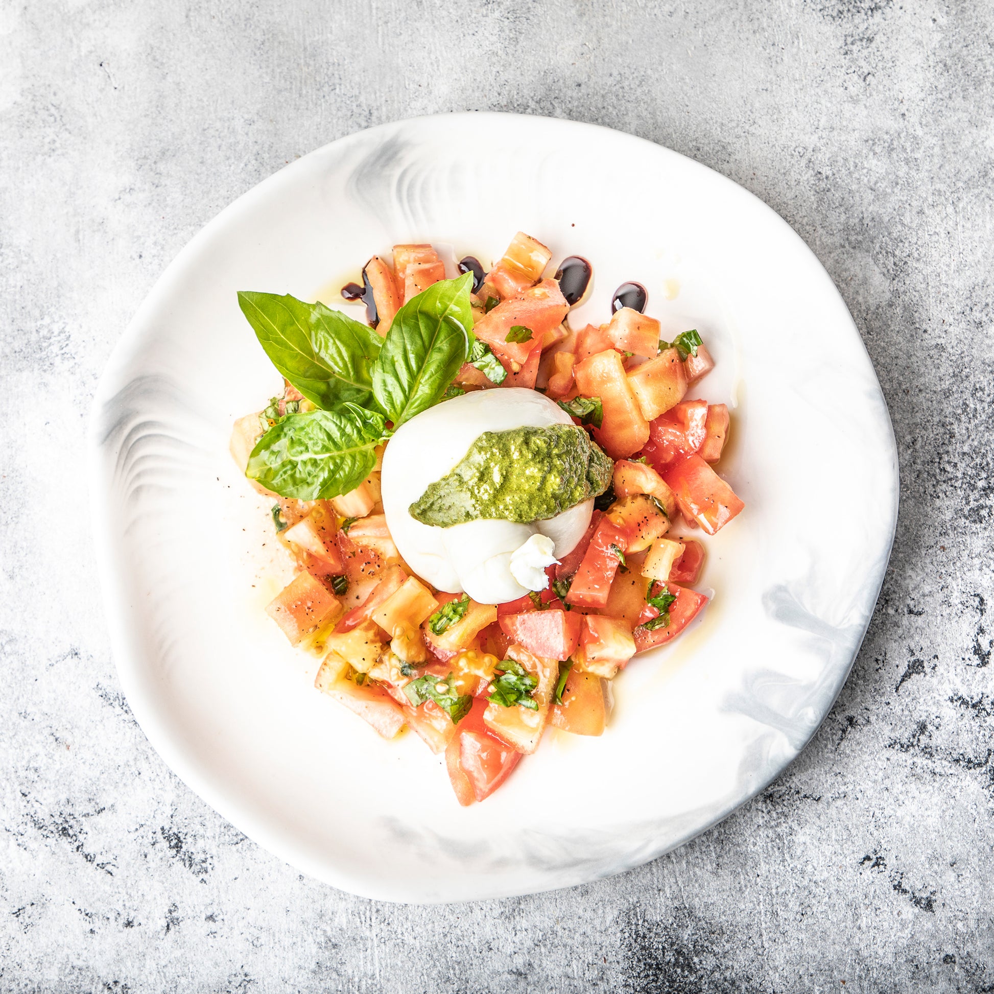 Queso búfala y albahaca.